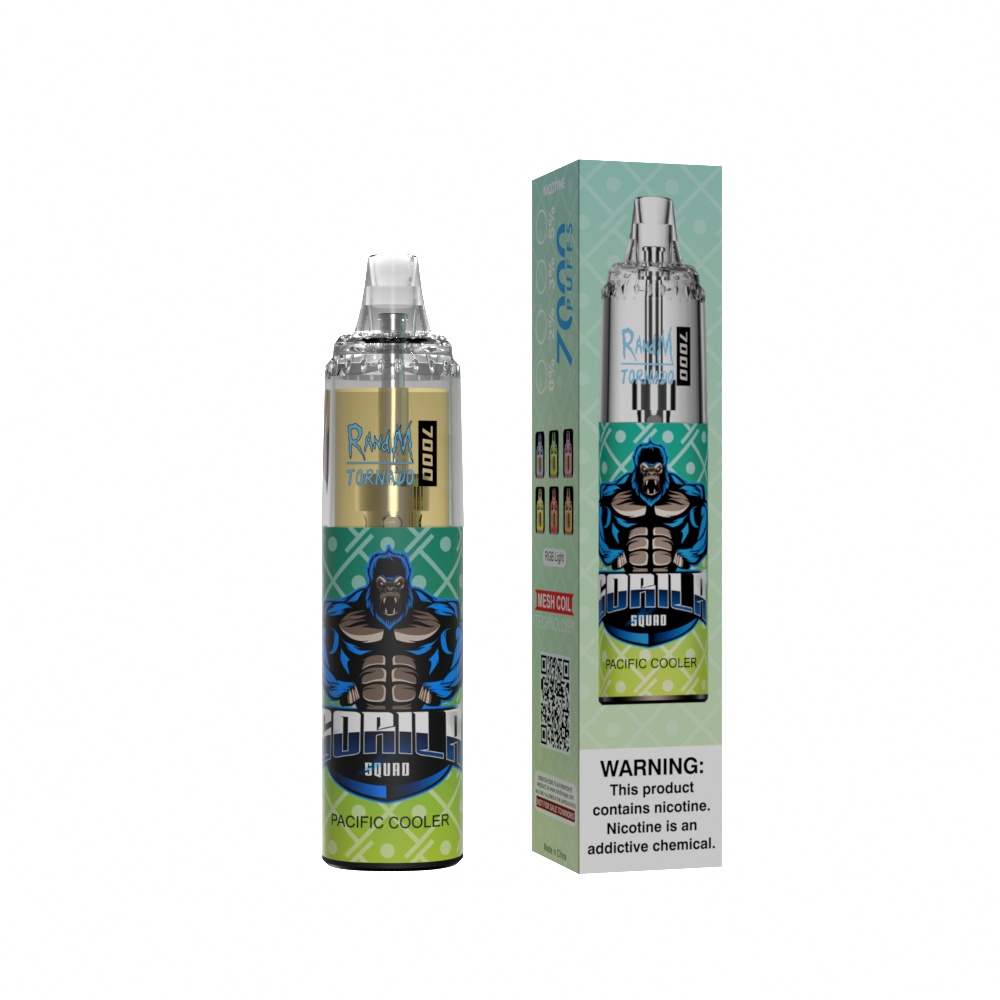 A RandM Tornado 7000 Pacific Cooler különböző trópusi gyümölcsöket kombinál frissítő hűtőhatással, hogy egzotikus frissességélményt nyújtson. A 7000 puff, 14ml e-folyadék és 850mAh újratölthető akkumulátorral kivételes élettartamot biztosít. Állítható légáramlás, RGB világítás és nikotin erősség 0-5%. Trópusi felfrissülés.