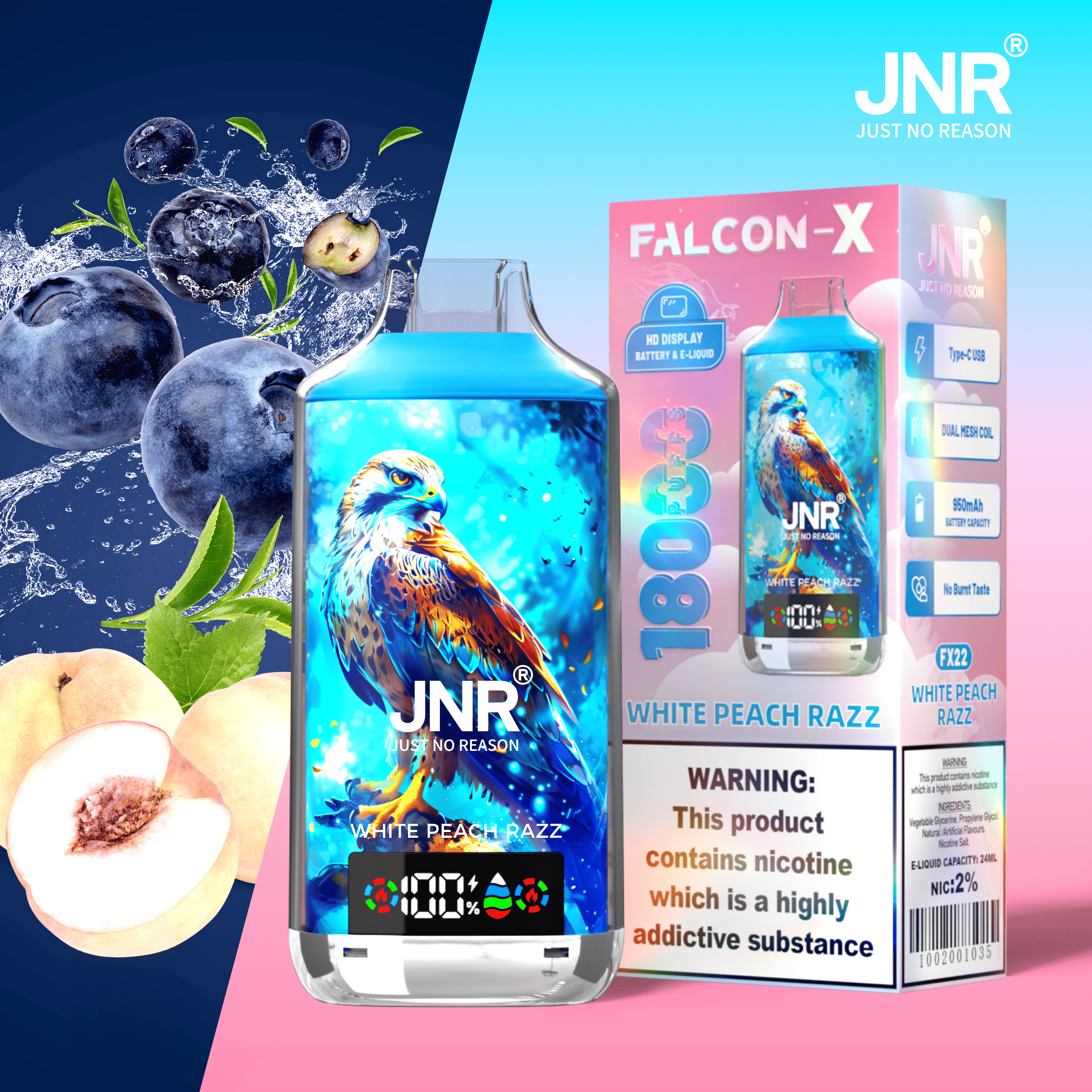 JNR Falcon X 18000 Züge White Peach Razz – Produkthighlights: