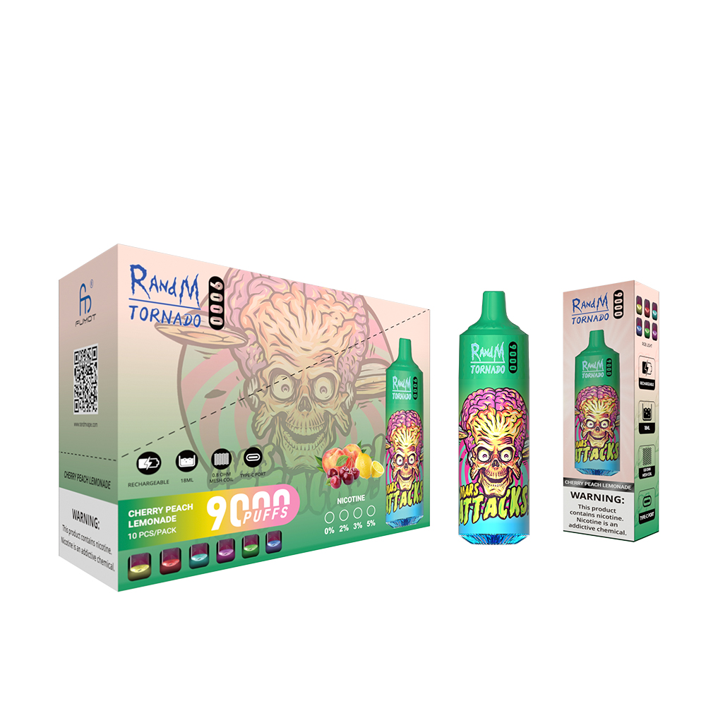 Die RandM Tornado 9000 Cherry Peach Lemonade vereint fruchtige Süße mit erfrischender Zitrusnote in einem eleganten, wiederaufladbaren Einweg-Vape. Diese innovative E-Zigarette enthält 18 ml erstklassiges Nikotinsalz-Liquid und ermöglicht bis zu 9000 genussvolle Züge. Die harmonische Kombination aus Kirsche, Pfirsich und Limonade wird durch die Mesh-Coil-Technologie perfekt zur Geltung gebracht. Dank des Type-C-Ladeanschlusses bleiben Sie stets bereit für den nächsten Geschmacksmoment. Die RGB-Lichteffekte setzen zusätzliche Akzente.